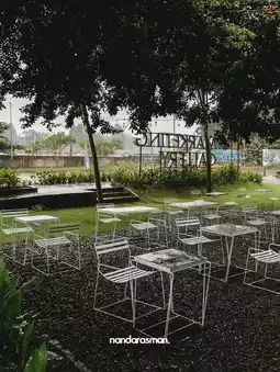 The place is really comfortable, has indoor and outdoor areas. Shady because there are lots of shady trees. It's also suitable as a place to hang out while having a busy breakfast.