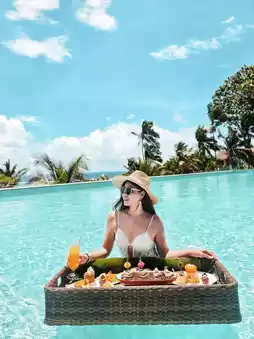 ▫️Floating breakfast: Breakfast baskets perfectly complement the blue sky and white clouds—eat and snap Instagram hits by the infinity pool