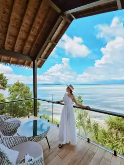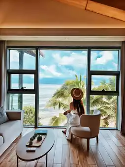 Each villa is your personal ocean art gallery! 270° floor-to-ceiling windows frame the jelly-blue sea and palm trees into a dynamic painting. Opening your eyes in the morning to pink dawn spreading across the horizon is like an endless symphony of waves.