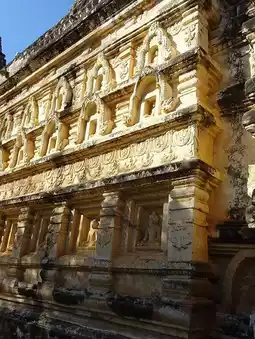Fantastic temple with lots of small figurines embedded in the walls. The modern entrance spoilt the ancient structure. It is filled the Buddhas on the outer wall had that look a little different. It is a really beautiful and interesting place.Very closed to Ayeyarwaddy River Bank .