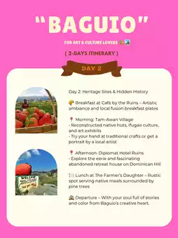 Perfect for those who want to dive deep into Baguio’s creative spirit and rich heritage.