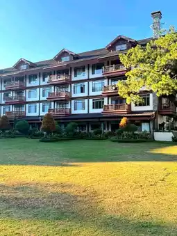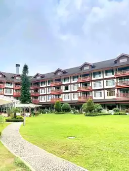 Located inside the historic Camp John Hay in Baguio, The Manor is a charming forest‑style hotel with warm wooden accents and balconies overlooking pine groves and rolling mountain views.