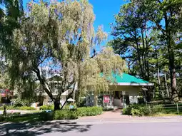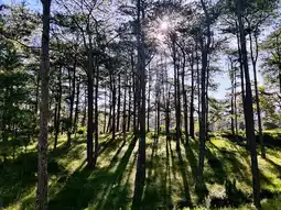 Surrounded by pine trees, the cabin area feels like stepping into a European forest. Sunlight filters onto the grass, and even the air seems softer.
