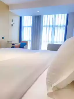 The room has a simple yet cozy style, making you feel instantly relaxed upon entering. Both beds are dressed in soft white linens – the comfort level is beyond words 🛏 But the real highlight is the ultra-HD projector in the room! The image quality is unreal, whether you're rewatching classic movies for nostalgia or catching the latest blockbusters, every detail comes through crystal clear – it's like having a professional cinema right in your room 🎬