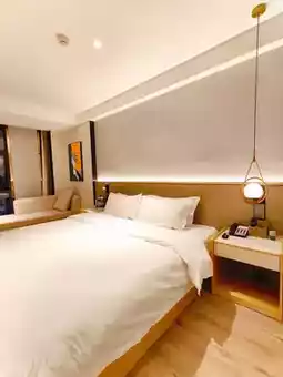 Back in the room, a warm atmosphere instantly enveloped me! ❗️ The immaculately sized bed was so soft and comfortable, it felt like sinking into a cloud! ☁️☁️☁️ The room's decor is simple yet stylish, and the warm yellow lighting is just the right touch, creating a relaxing atmosphere. ❗️