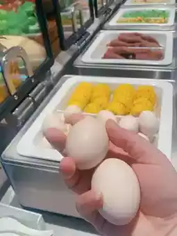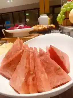 The breakfast restaurant is absolutely divine! Entering is like stepping into a food paradise, with hot buns, freshly fried eggs, fragrant coffee, and everything in between. The highlight is the fruit section—a true paradise for fruit lovers! The sliced watermelon is as red as agate, and the juice explodes in your mouth with every bite. The dragon fruit is plump, dotted with black seeds like stars, and it's incredibly sweet. The cantaloupe is so fresh that you could squeeze out the juice. I could have a whole plate of it!