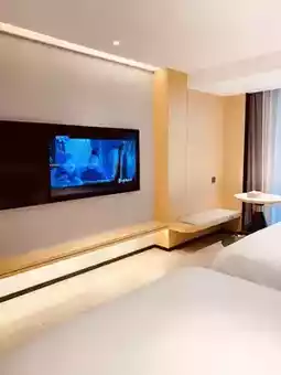 Upon entering the guest room, you're instantly struck by the bright, airy space. The abundant light illuminates the room, making it feel like a warm embrace from the sun. The two queen-sized beds are like cloud castles, and the bedding is so soft it almost feels like it's enveloping you. The moment you lie down, all the travel fatigue is instantly swept away. The room layout is incredibly thoughtful, with the TV, small round table, and lounge chairs strategically placed. Whether you're lounging to catch up on a TV series or just chatting with friends, it's incredibly comfortable.