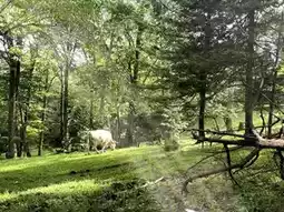 At the foot of the mountain lies Xianren Valley, and as you ascend, you'll reach the Yuan Musk Deer Nature Reserve. Along the way, you can spot many cows grazing peacefully.