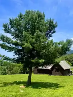 That evening, we returned to Baishan City to stay overnight. The next morning, it only took a 30-minute drive to reach Xianren Valley. Along the way, we passed many villages, and the roadside was adorned with colorful flowers in full bloom (later, I found out they were called zinnias, also known as "step-up flowers" according to my grandma). From the moment we entered the mountain, we were greeted by a sea of green. A winding creek accompanied us along the way, and since it was the weekend, we occasionally saw campers by the creek, with watermelons 🍉 chilling in the stream. We took our time, stopping frequently. The mountain road was paved with stones, making it relatively easy to drive. Eventually, we reached an open area where the road ended. Since the area hasn’t been fully developed, there were no proper parking spaces, so we had to park by the roadside and continue on foot. I loved sitting there, enjoying the breeze and daydreaming. 🍃