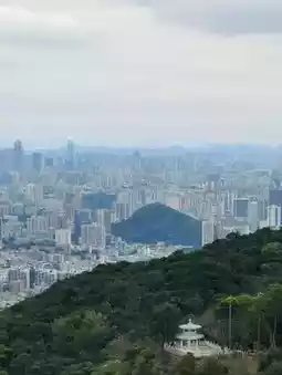 When I reached one of the main viewing points—Moxing Ridge—I paused to take in the panorama. Guangzhou stretched out in the distance, its skyline softened by the haze and framed by mountains. It was a peaceful contrast: the stillness of the mountain against the motion of the city. A light breeze moved through the trees, and birdsong accompanied the moment.
