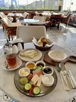 Breakfast can be taken at a restaurant 2 minutes walk away. It was a great breakfast with traditional Azerbaijani porridge, cheese, omelettes, bread, etc.😋