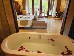 Many guests have noted that the rooms here are not only spacious but also comfortable, especially praising the large and clean bathroom designs. The hotel’s semi-buffet breakfast offers a wide variety of options, with the coffee receiving particular acclaim. Ubud Village Hotel is perfect for families and friends traveling together, with even two adjacent rooms available to accommodate four girls traveling together. The staff are friendly and helpful, and the rooftop suite includes a delicious traditional afternoon tea. The pool area provides a peaceful retreat, making it the perfect place to relax after a day of exploring Ubud.