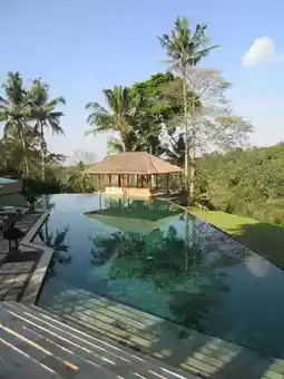 The hotel's location is truly exceptional, right across from a canyon with breathtaking views. The architecture perfectly blends traditional Balinese village elements, making it a true paradise. Every staff member was warm and friendly during our stay. Check-in required no deposit, and all procedures went smoothly, which felt very thoughtful. The hotel also upgraded us to a valley suite for free, which included a private pavilion where we could fully enjoy our meals.