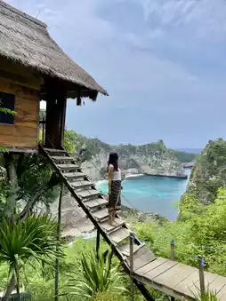You're not seeing thingsāthis viral treehouse online really does require waiting in a long line and paying a fee! The treehouse is located on Nusa Penida, a 45-minute boat ride from Bali, followed by an hourās drive and then a long, steep staircase. But once you arrive and see the stunning view facing the treehouseāa vast expanse of sky-blue sea and cliffs shaped by years of erosionāitās all worth it š A little photo tip: visit at sunrise or sunset. Although the treehouse is on the east side of Nusa Penida, so sunrise should be the best, last time we went at sunset, there was actually no queue at all, and even the staff had finished work, so no one was collecting money š¤£