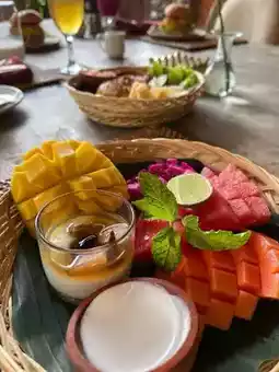 Our check-in experience was smooth, and the staff were very friendly. Even though we arrived quite late, we were still offered welcome drinks, which was great. Waking up to enjoy a delicious breakfast on the balcony was truly a feast for the senses. The breakfast provided by the hotel was very rich, including homemade granola, Indonesian fried rice, fried tofu, toast, avocado pancakes, and more. There were plenty of options, including vegetarian and dairy-free choices, catering to all kinds of tastes.