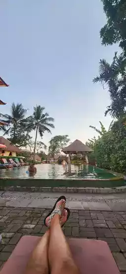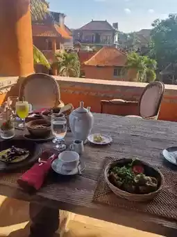 The hotel's location is a major highlight—it's in the city center, making it easy to get anywhere, yet it’s not on a busy main road, so it’s very quiet. Our villa was decorated in traditional Balinese style and was absolutely beautiful. The hotel’s facilities were excellent, with a refreshing pool that was perfect for relaxing in the afternoon to escape the heat. Plus, the hotel offers dry cleaning services, so you don’t have to worry about your clothes during the trip.