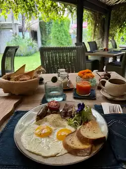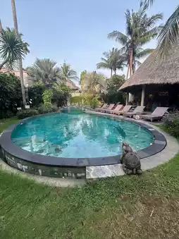 The hotel is centrally located in Seminyak, within walking distance to lively restaurants and shopping centers. Nearby, you can find unique eateries like BKeto Bali, Seminyak Kitchen, Naughty Nuri's Seminyak, and more. Guests can also rent bicycles or take the free beach shuttle to enjoy a leisurely afternoon on the beach.