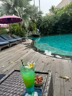 Located on a quiet street, this villa resort is perfect for relaxation. The hotel features tropical-style outdoor decor, with lush gardens and a pool area that feels like paradise. Each villa comes with a private plunge pool, beautifully decorated rooms, and a warm atmosphere. Friendly staff always greet you with a smile, and the attentive service makes guests feel delighted.