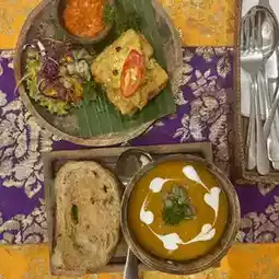 Sun Sun Warung in Ubud is a warung popular with tourists. When I visited at night, it was fully booked, but it is recommended to come in the morning when there are fewer people. The seating area has the atmosphere of a Balinese home, the beautiful presentation, and the low prices are likely reasons for its popularity. The seasoning of the dishes is mild and easy to eat.