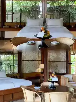 Daily double breakfast, minibar sodas, traditional tea and snacks, plus rich benefits including round-trip airport transfers, Balinese-style feasts, and private yoga classes.