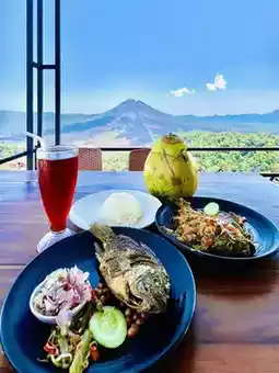 I ordered Mujait Nyat Nyat and Fried Mujair, the fried mujair is includes Sambal Matah inside it. This restaurant is so amazing, surrounded by Batur Mountains and Batur Lake views, you can enjoy your lunch peacefully✨