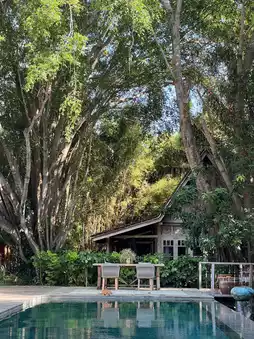Baquis Villa Hotel is located in Jimbaran, just a 10-minute walk from Jimbaran Beach. Known as a "paradise in the forest," this hotel not only offers a beautiful and peaceful environment but also exudes a strong vintage charm with a dreamy French style. The hotel is decorated by a renowned designer, with each room featuring a unique style, antique decorations, and powder blue tones, making every corner a perfect backdrop for photos. Three different swimming pools provide plenty of options, the courtyard is romantically and atmospherically arranged, with sunbathing in the morning and free afternoon tea in the afternoon—life is just that enjoyable!