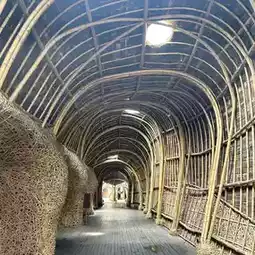 5️⃣ Next to the hotel lobby is a bamboo-constructed corridor showcasing low-carbon production techniques, fully demonstrating how plastic bottles are recycled, sorted, compressed, and molded. It’s like a knowledge class beyond the hotel’s usual functions.
