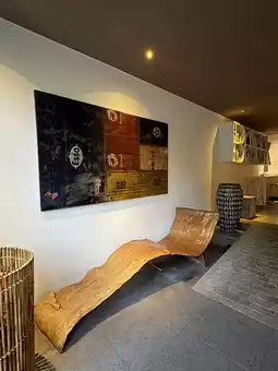 The interior features reliefs everywhere, giving a strong Balinese feel.
