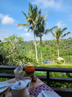 Staying here is truly amazing! Every morning you can join free yoga classes, facing stunning views that refresh your body and mind. Then, you can participate in guided rice field walks to learn about local customs and religious beliefs. The hotel environment is fantastic, surrounded by lush greenery full of vitality. The rooms are spacious and comfortable; although a bit humid, they are very clean. Additionally, the restaurant serves delicious food, especially the crispy pork belly fried rice and the hotel’s grilled pork ribs, which are so tasty you'll want to come back for more.