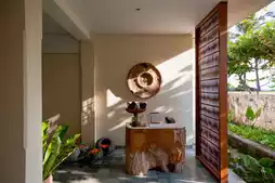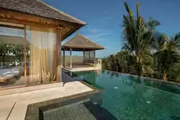 Keramas Beach Komanecka Hotel is a luxury boutique resort located on a beautiful black sand beach, covering 4 hectares. The unique 360-degree view showcases the Indian Ocean, nearby Nusa Penida Island, vast rice fields, and the sacred Mount Agung. All villas in the hotel feature private pools and unlimited ocean views. The resort adopts a contemporary Balinese style design, extensively using high-quality wood and luxurious interiors, filled with exquisite details throughout.🏝️