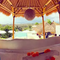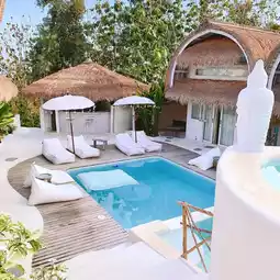Gravity Boutique Hotel is located in beautiful Pecatu, just a 5-10 minute drive from Padang Beach. The hotel features a unique design blending styles from Mykonos, Tulum, and Bali, with a minimalist and stylish vibe. Its distinctive cliffside views and natural surroundings are unforgettable, making it an ideal secluded retreat. Newly opened, it is highly favored by travelers for its excellent value.