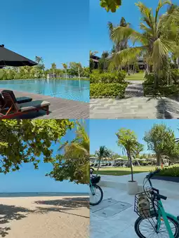 This place perfectly blends traditional Balinese culture with wellness concepts! Every morning starts with sunrise yoga to awaken your body and mind. In the afternoon, we recommend cycling to explore Sanur Beach and the nearby streets and shopping areas (the hotel offers free bike rentals). The resort has two outdoor pools facing the beach, complete with sun loungers. For those who love to relax, you must try the hotel’s MASSAGE—I fell asleep in less than ten minutes! So comfortable! The massage rooms are impeccably clean and hygienic. After the massage, enjoy hot tea and snacks! Perfect for family trips or romantic honeymoons!