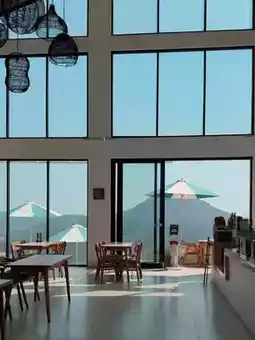 No need to worry about rain! The indoor dining area extends the view with panoramic floor-to-ceiling windows and mirror designs, letting you experience the mysterious glimpse of the volcano even on rainy days.
