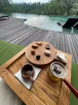 Although it’s a bit far from Ubud town, the surrounding natural scenery is truly unparalleled. The Tegallalang Rice Terraces near the hotel are a must-visit; it’s recommended to go early in the morning to avoid the crowds. Also, there are some great restaurants nearby, such as Tepi Sawah Waroeng, where the food and views are excellent and definitely worth trying.