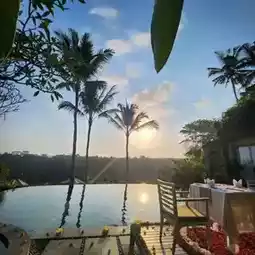- D'tukad Coffee Club Bali: Much more relaxed than the crowded Cretya, you can enjoy the green rice field view and swim without a minimum charge.