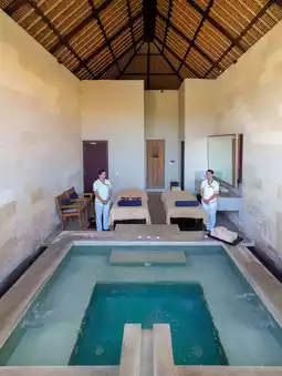 We stayed in a deluxe villa with a private pool and daybed, perfect for relaxation. The villa was very spacious and included a small garden, providing privacy and comfort. Especially the villa’s bathroom, which was uniquely designed with direct access to the pool, allowing us to enjoy the water anytime. 🌊🏠