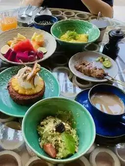 🍳 Breakfast is à la carte, plated so beautifully it looks like art! There are plenty of choices! The satay skewers stand out the most, with a smoky charcoal aroma mixed with peanut sauce—delicious😋, and the ingredients are super fresh~