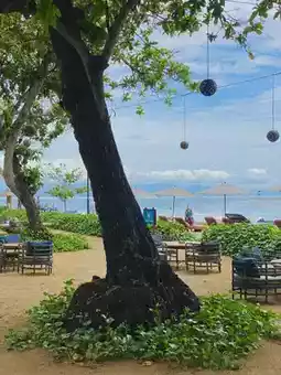 🌴 The hotel’s greenery is truly like a tropical garden! Layers of coconut palms, frangipani, and ferns surround the pool, making it look like a natural waterfall pool. The private beach faces east, and the sunrise at 5:30 AM colors the clouds pink and gold—so romantic it takes your breath away!