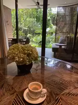🏠 This time I stayed in a ground-floor suite with a terrace, spacious enough to do somersaults! The entire place is newly furnished, blending modern and traditional Balinese styles. The fabric sofa in the living room is so soft that once you lie down, you don’t want to get up~ The rattan sofa on the terrace has a slight outdoor damp vibe, but surprisingly, the hotel has very few mosquitoes and no monkeys in sight🐒✨
