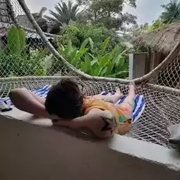 We loved our stay here. A beautiful spot in the centre of busy street in Ubud a perfect for a quick stay! It’s secluded, with a beautiful atmosphere and pool. Room was very cool, although like most of the lofts, careful with low ceilings. It's quite spotless at times. The food is absolutely memorable. The staff at Clean Living were super friendly and accommodating. There is a small temple in front of the place and they all seem to be truly spiritual people 🙏 Two rabbits are peacefully visiting sometimes, a few cats we saw and even a monkey visited the place -- but don't worry, the animals are on a distance and aren't annoying at all. It's all very clean and cozy. The pool is cleaned by the staff very carefully every morning and they prepare the water for safe swimming as well.