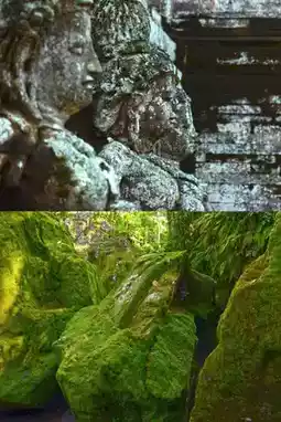 As dusk spreads over the valley, the entire volcanic rock becomes a canvas for moss. The wooden boardwalk built by Dutch colonists has rotted into a bed for fungi, yet the Mouth of the Monster in Elephant Cave still yawns wide, breathing in 20th-century visitors and 11th-century mountain winds. Under the moonlight, the maiden statues at the sacred spring pool freeze in frost; what they hold is not a dried-up water jar, but the flowing millennia sealed by moss.
