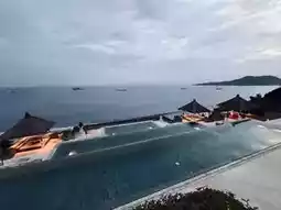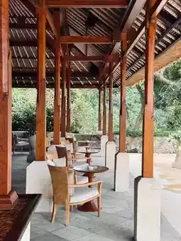 In the public areas, the three-tiered main scenic axis pools are very impressive. The entire hotel’s decorative materials consistently use square mosaic elements, from floor and wall coverings to soft furnishings like tables, chairs, boxes, and even products in the gift shop, creating a distinctive design language. However, there are significant functional flaws, such as the overly exposed kitchen prep area and the fact that restrooms are only located in the lobby. Guests in the restaurant and bar must climb steep outdoor stairs to reach the restrooms, which is especially problematic on rainy days.