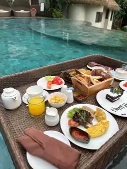 · The hotel runs four free shuttle buses daily to and from Ubud city center, making transportation convenient, though taxi prices may rise during peak season.