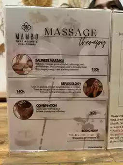 The breakfast is delicious, served a la carte with 4 set options to choose from. The staff provides excellent service. The hotel offers facilities including a restaurant, massage spa (Balinese massage is very good👍), shuttle service to the pier, free shuttle to Mambo Beach Restaurant, a beachfront restaurant, tours around the east & west of the island, diving and snorkeling at affordable prices. Staying here covers everything in one place.