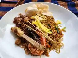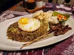 The "Satay" served alongside the Nasi Goreng is grilled meat skewers that were juicy, tender, and had a savory aroma. Especially the peanut sauce paired perfectly, with its sweet and spicy flavor enhancing the satay’s umami, making you want to eat skewer after skewer. The combination with Nasi Goreng was superb, and eating them together increased the satisfaction even more.
