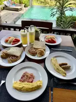 Spring break in Bali was the perfect escape! I had breakfast at the Royal Roco Villa restaurant, and it was such a peaceful and refreshing experience. The place is surrounded by lush greenery, making every bite feel even more special.