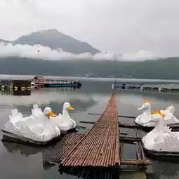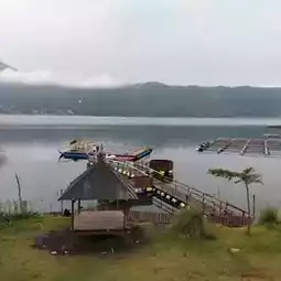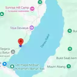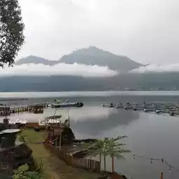 Near the volcano lies the unique Lake Batur. Its smooth surface reflected the clouds, and the light mist created a feeling of