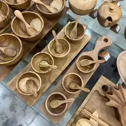 - Sells wooden tableware with fixed prices, so no bargaining stress