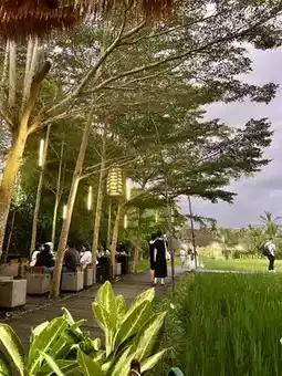 Pison Ubud is a restaurant and café with a great atmosphere. The interior is decorated in warm tones blended with Balinese style. They have rice fields planted behind the restaurant. You can walk and enjoy the lush green rice fields. You can choose to sit inside with air conditioning or outside to enjoy the natural breeze and the view of the rice fields.