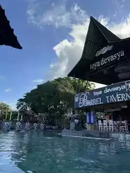 Toya Devadya Hotspring is a spa with an onsen, soaking in hot springs from natural mineral water sourced from the summit of Mt. Batur, a dormant volcano in Bali. Located in Kintamani, the weather here is cool all year round, perfect for soaking in the hot springs to help relax travel fatigue and enjoy beautiful views of the lake and the Gunung Abang mountain range.